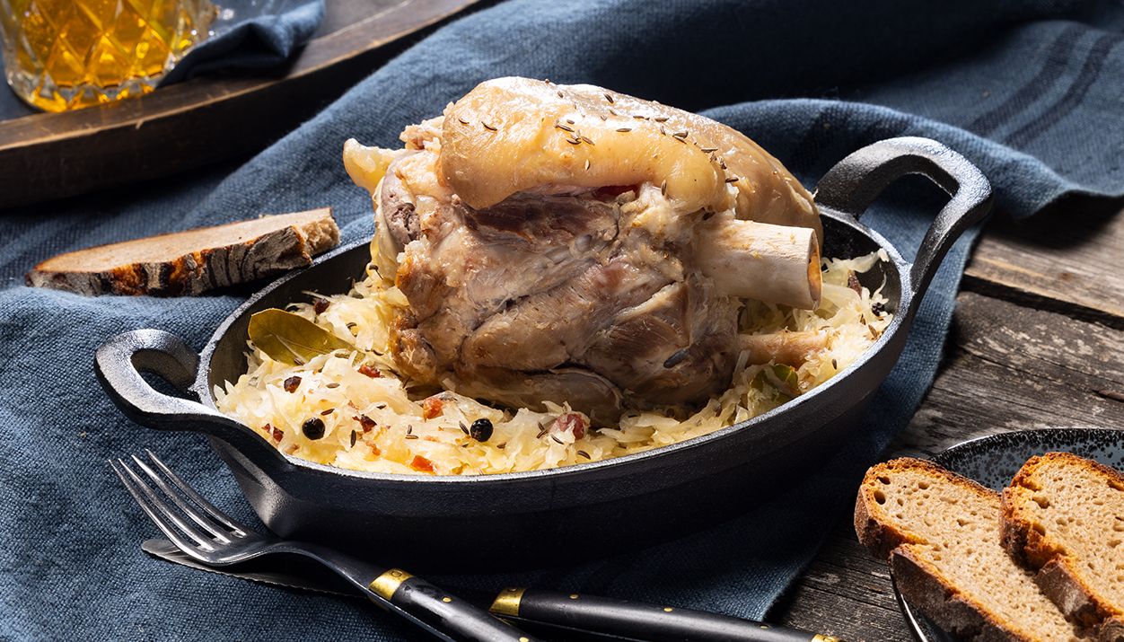 Da fühlt man sich gleich wie in einer traditionellen bayerischen Wirtschaft oder in einem gemütlichen Biergarten: mit einer wohl duftenden, perfekt gewürzten Haxe und Sauerkraut auf dem Teller. Dank unserer Spezialitäten von der Kaiserburg Feinkost findet sich dieser herzhafte Genuss in Handumdrehen auf dem Tisch – einfach nur aufwärmen, eine Scheibe Brot dazulegen, fertig!