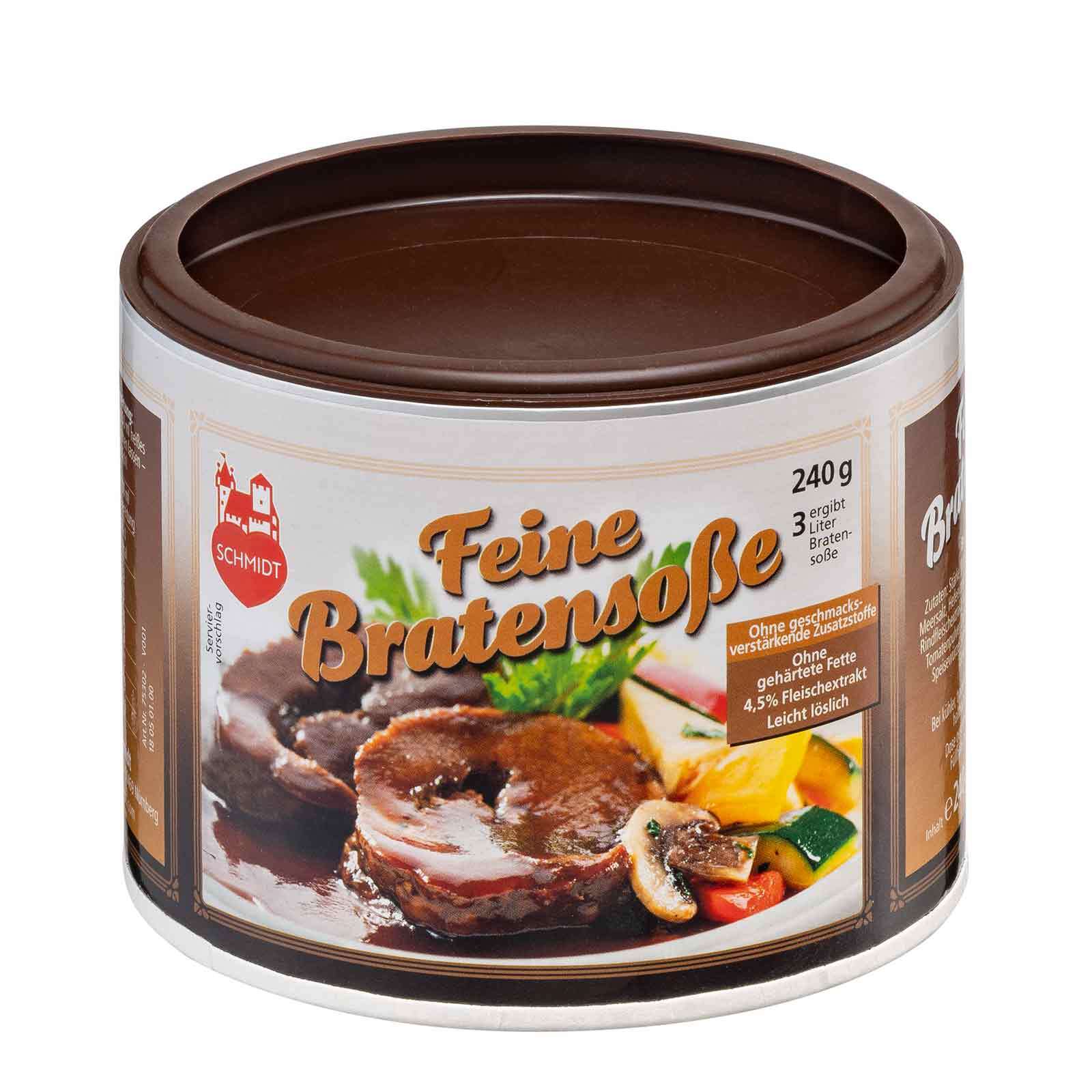 Das Geheimnis unserer Bratensoße sind die Zutaten: Wir legen besonderen Wert auf die Qualität der Ingredienzien, Kräuter und Gewürze und verzichten ganz auf Geschmacksverstärker. Purer Genuss für Ihren Sonntagstisch! Die dunkle Bratensoße passt natürlich zu Braten, aber auch zu anders zubereiteten kräftig schmeckenden Fleischsorten. Stellen Sie sie z.B. zu Steak auf den Tisch: Die Kombination aus bestem Rindfleisch und unserer Soße ist wirklich sagenhaft!