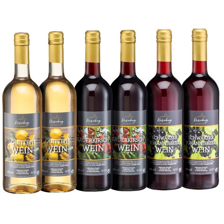 Fruchtiger Genuss in der Flasche: Unsere Fruchtweine begeistern mit einer perfekten Balance zwischen Säure und Süße. Da lohnt es sich, gleich einen kleinen Vorrat anzulegen! Sie erhalten hier im Set 6 Flaschen exquisiten Fruchtwein in drei verschiedenen Geschmacksrichtungen: