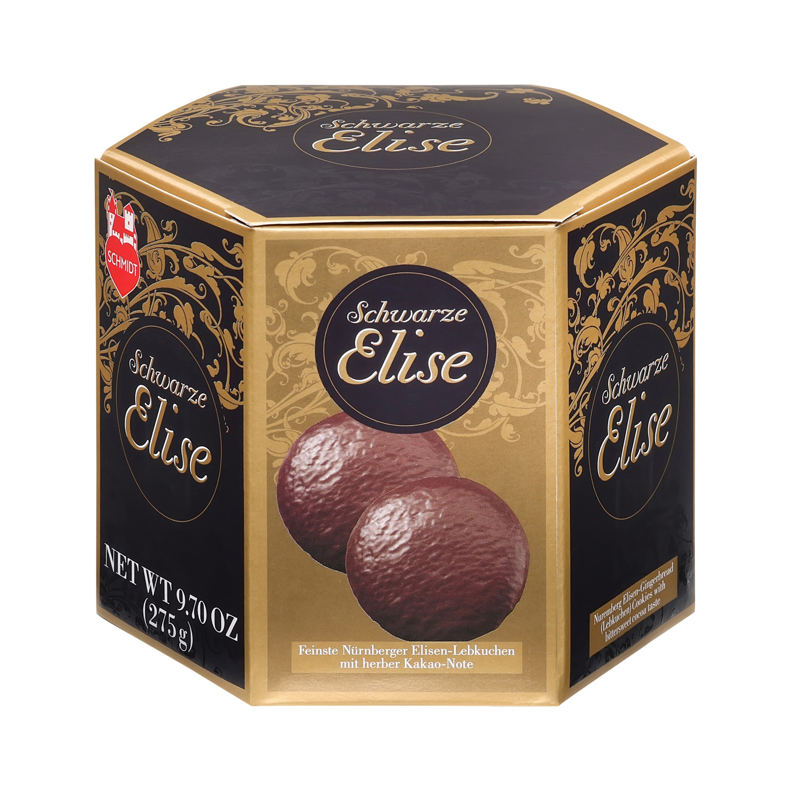 Die Legende besagt, dass der Firmengründer E. Otto Schmidt beim Experimentieren in der Backstube eine Kakaodose umgestoßen hat. So gelangte der Kakao in den Teig – und siehe da, das Experiment schmeckte vorzüglich! Heute gehören die schwarzen Elisen zu den beliebtesten Lebkuchen von Lebkuchen Schmidt – die dunkle Verführung auf feinster Oblate, mit wunderbar knackiger Schokolade überzogen. Die muss man einfach probieren!