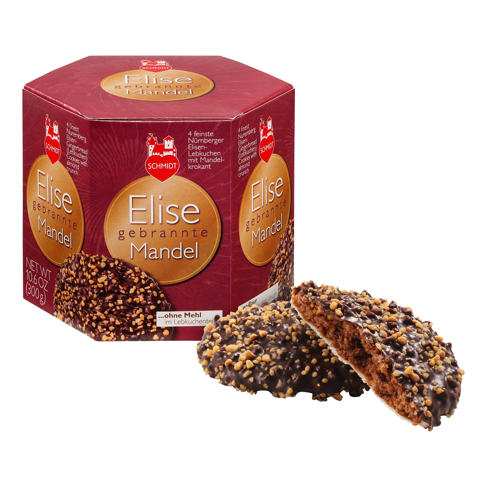 Über die Elisen-Lebkuchen müssen wir nicht viel erzählen: Sie sind dank ihrer erlesenen Zutaten, einem hohen Nuss- und einem niedrigen Mehlanteil die Krönung der Lebkuchen-Kunst. Jede Elise wird auf einer feinen, frischen Oblate gebacken und auf verschiedene Arten überzogen. Die Elise gebrannte Mandel enthält kein Mehl im Teig und wird mit Schokolade und Splittern von Gebrannten Mandeln verfeinert. Diese süßen Snacks, die von keinem Fest wegzudenken sind, haben eine jahrhundertealte Historie: Um 1650 wurden sie das erste Mal hergestellt und verbreiten seitdem den unverwechselbaren Geruch und Geschmack, den wahrscheinlich jeder von uns mit seiner Kindheit verbindet.