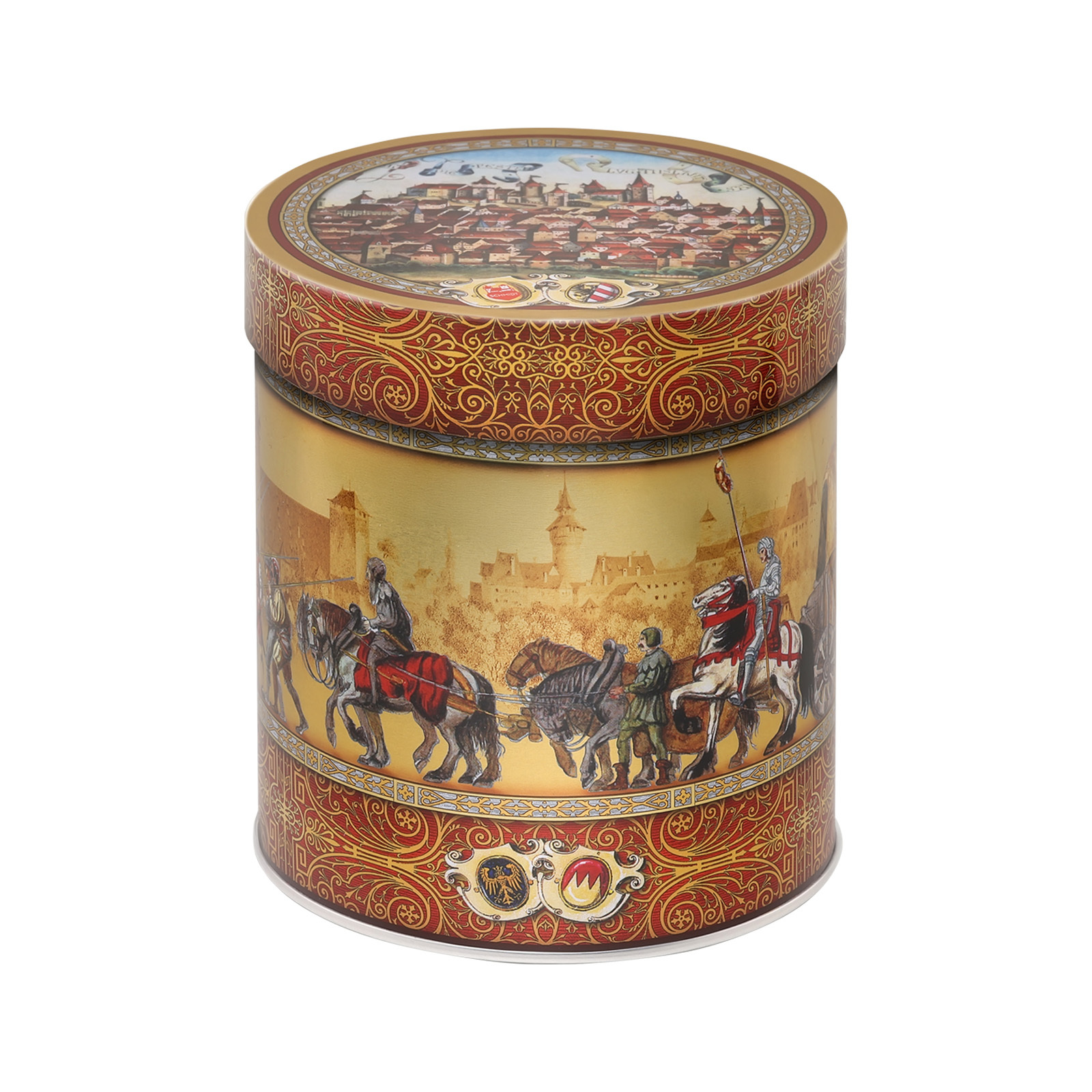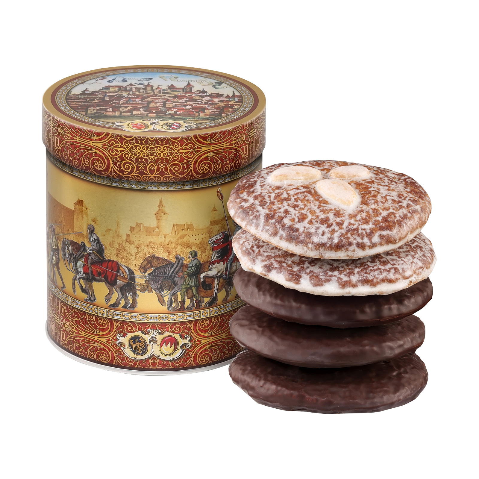 2025 haben wir uns für den Kaufmannszug in Nürnberg entschieden und im Innern der Dose befindet sich ebenfalls Nürnberg pur: das wahrscheinlich bekannteste Produkt aus der fränkischen Metropole, feinste Oblaten-Lebkuchen, natürlich gemischt, so dass jedes Leckermäulchen seinen Lieblings-Lebkuchen bekommt. Mit besten Zutaten auf frischen Oblaten gebacken, sind die runden Köstlichkeiten einfach immer eine Sünde wert!