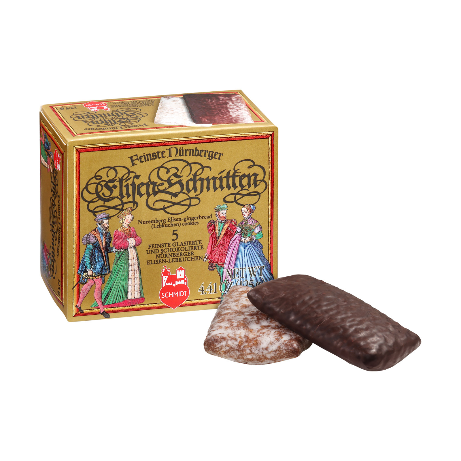 Haben Sie schon mal unsere Elisen-Schnitten probiert? Nein? Dann wird es jetzt höchste Zeit! Die Original Nürnberger Elisen-Lebkuchen sind dank ihrem hohen Nussanteil die Königsklasse unter den Oblaten-Lebkuchen. Als Elisen-Schnitten in rechteckiger Form schmecken sie natürlich genauso einzigartig köstlich! Aus besten Zutaten werden sie nach einem alten traditionellen Rezept schonend hergestellt und gut geschützt verpackt: Auch wenn Sie einen größeren Vorrat in unserem Online-Shop kaufen, halten sie monatelang und bleiben dabei frisch und weich. In der Packung finden sich drei glasierte und zwei schokolierte Elisen-Schnitten – für jeden Geschmack ist etwas dabei! Genießen Sie die Lebkuchen als Nascherei zwischendurch, als Nachtisch oder zum Kaffee, alleine oder mit Freunden! Vor allem in großer Runde ist es ratsam, mehrere Packungen dieser Lebkuchen-Köstlichkeiten hinzustellen, denn sie werden im Nu weg sein, garantiert!