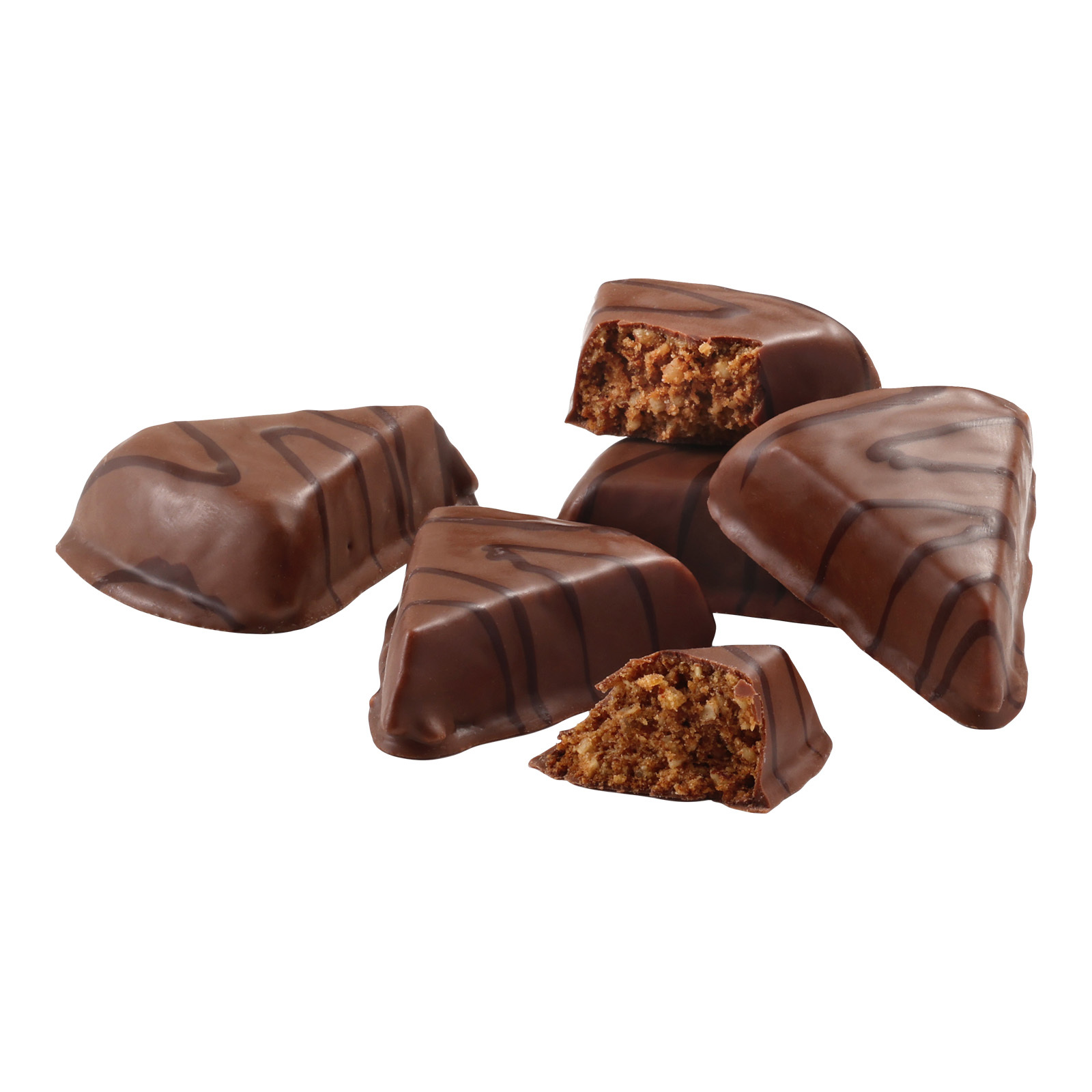 Im Einzelfall kann es vorkommen, dass nach dem Erscheinen dieser Produktinformation inhaltliche Änderungen erfolgt sind. Aus diesem Grund bitten wir Sie, vor dem Verzehr unserer Produkte die Zutatenliste und die Nährwertangaben auf der jeweiligen Verpackung zu beachten. Lebkuchen in Dreiecksform mit Vollmilchschokolade