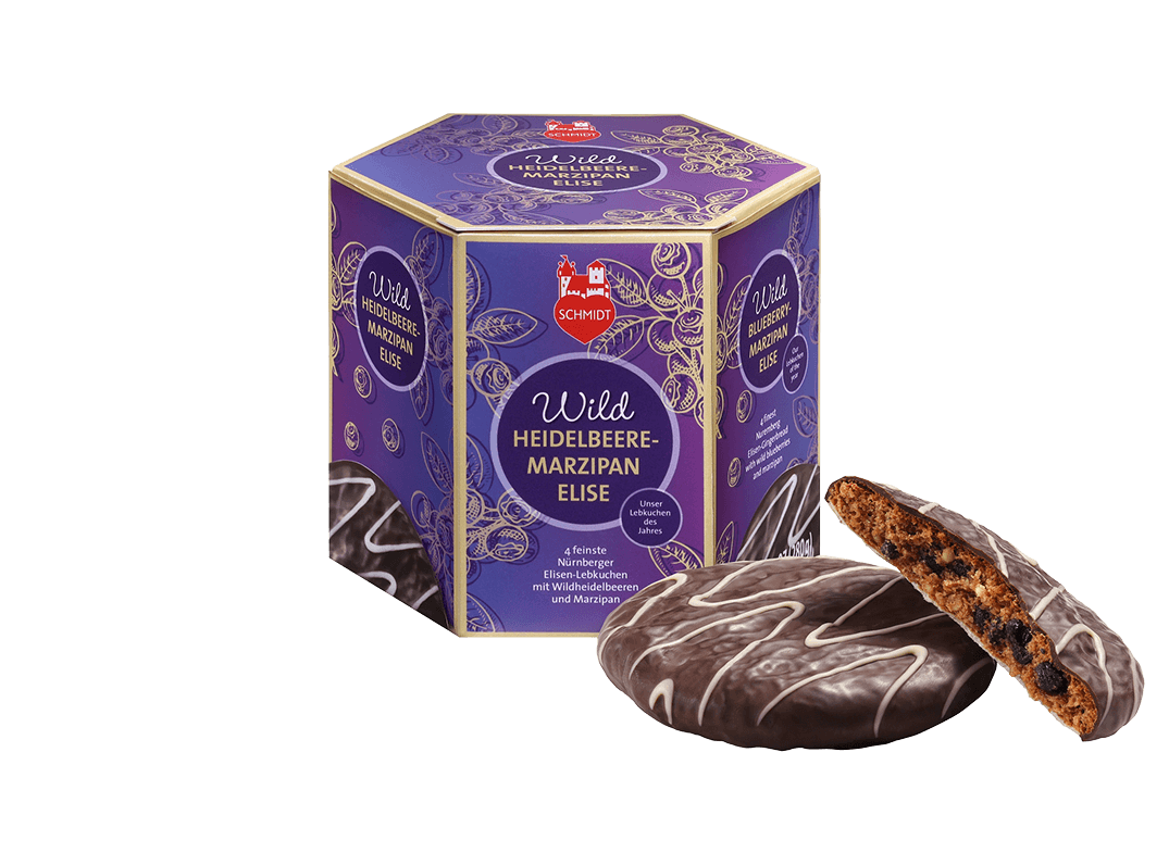 Wahre Lebkuchen-Schmidt-Fans warten jedes Jahr gespannt auf den Lebkuchen des Jahres, eine neue Kreation, die sich unsere Lebküchner Jahr für Jahr einfallen lassen. Mit der Wildheidelbeere-Marzipan-Elise präsentieren wir eine außergewöhnliche Spezialität, die klassische Lebkuchenkunst mit fruchtiger Finesse verbindet.