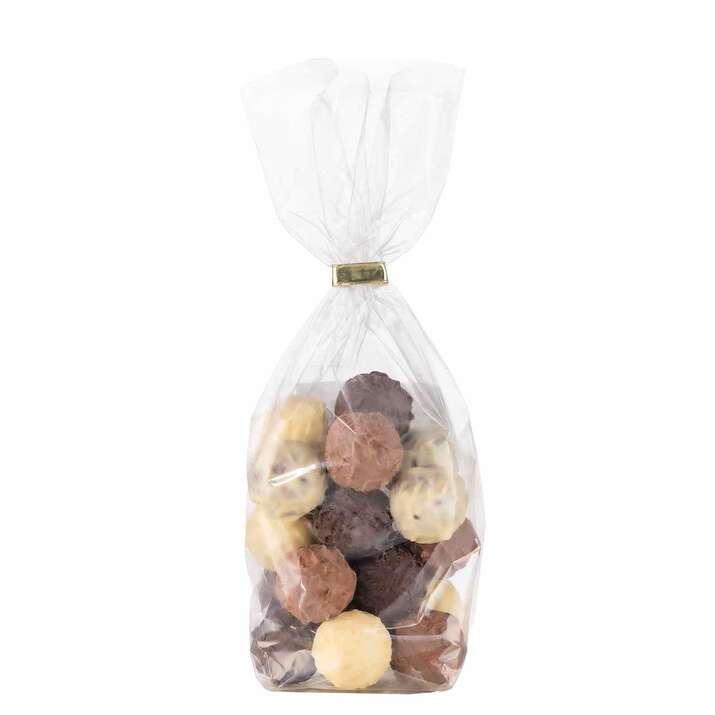 In unserem Trüffel-Beutel haben wir für Sie die Klassiker unter den Trüffel-Pralinen zusammengestellt: Rum, Mousse chocolat, Vanille, Kaffee und Marc de Champagne. Je nach Füllung wird die köstliche Creme von weißer, Milch- oder Zartbitterschokolade umhüllt.