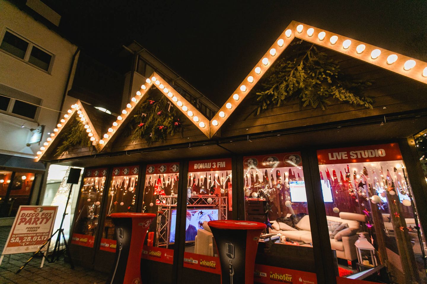 Dank des gläsernen Radiostudios können Besucher des Ulmer Weihnachtsmarkts die Moderatoren während einer Live-Sendung beobachten. Dieses Highlight verdient eine Lebkuchen-Schmidt Auszeichnung!Sie müssen die Cookies akzeptieren, um diese Funktion zu verwenden.
