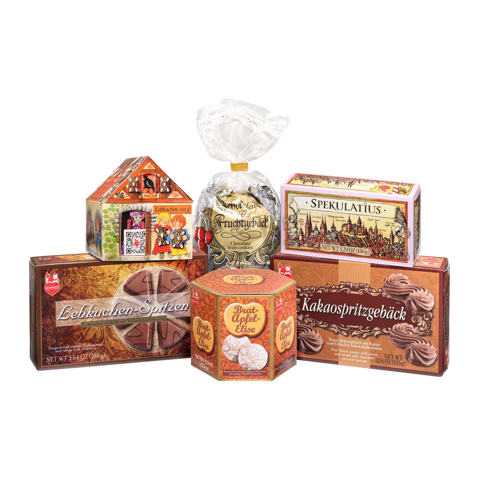 Allerlei weihnachtliche Spezialitäten von Elisen-Lebkuchen über Spekulatius bis zu einem Märchenhäuschen mit Schoko-Lebkuchenherzen haben darin Platz gefunden und erfreuen jede Naschkatze auf ganz besondere Art und Weise. So haben Sie nicht nur die Verpackung, sondern auch gleich die Geschenke!