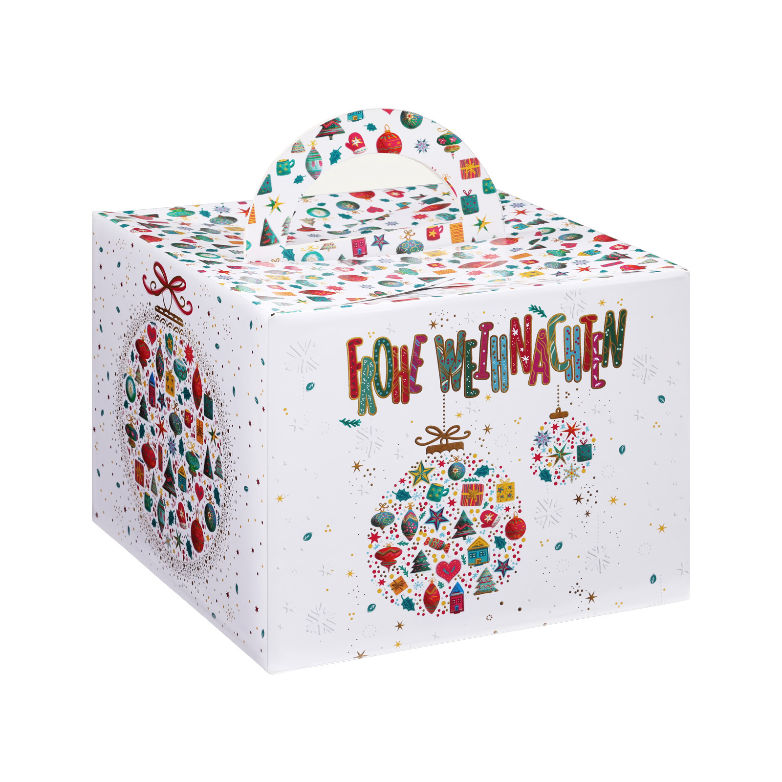 Diese Situation kennt jeder: Man hat eine ganze Menge toller Kleinigkeiten für eine liebe Person gekauft, die nun als Weihnachtsgeschenke verpackt werden müssen. Das ist aufwändig und manchmal, je nach Form, gar nicht so leicht. Da haben wir von Lebkuchen-Schmidt wie so oft eine perfekte Lösung: unseren Präsent-Würfel mit Tragegriff und in schönstem Weihnachtsdesign. Und das Beste daran: Wir haben ihn schon für Sie befüllt!