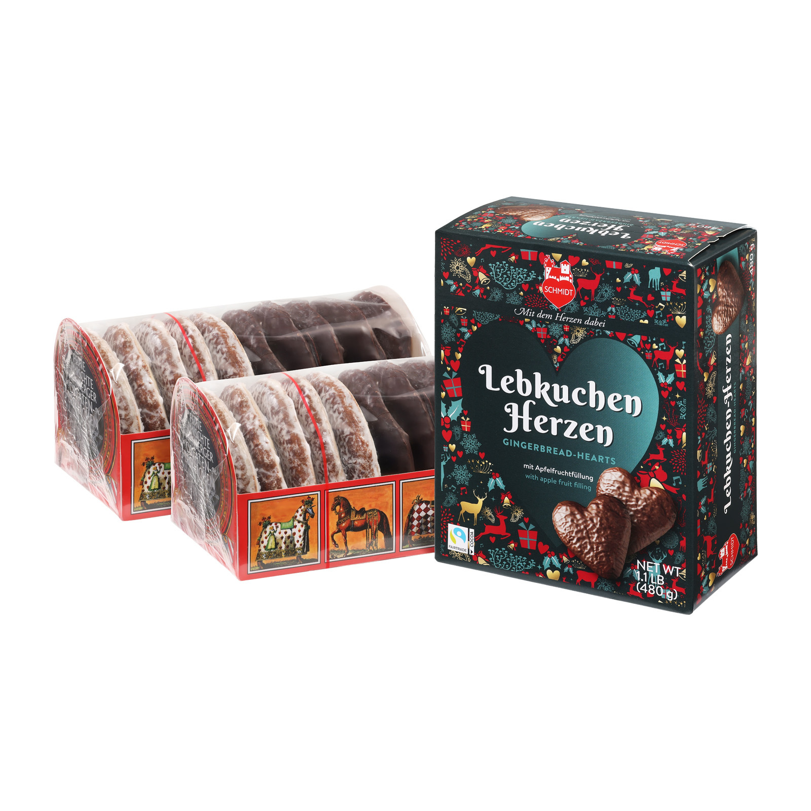 Klassiker mit Herz: So haben wir unser Lebkuchen-Paket genannt, in dem Sie köstliche Lebkuchen-Spezialitäten aus unserem Hause finden. Zum einen sind es zwei Lebkuchen-Rollen – feine Oblaten-Lebkuchen 2-fach sortiert mit Schokoüberzug oder Zuckerglasur – zum anderen eine Packung Lebkuchen-Herzen, mit feiner Schokolade überzogen.