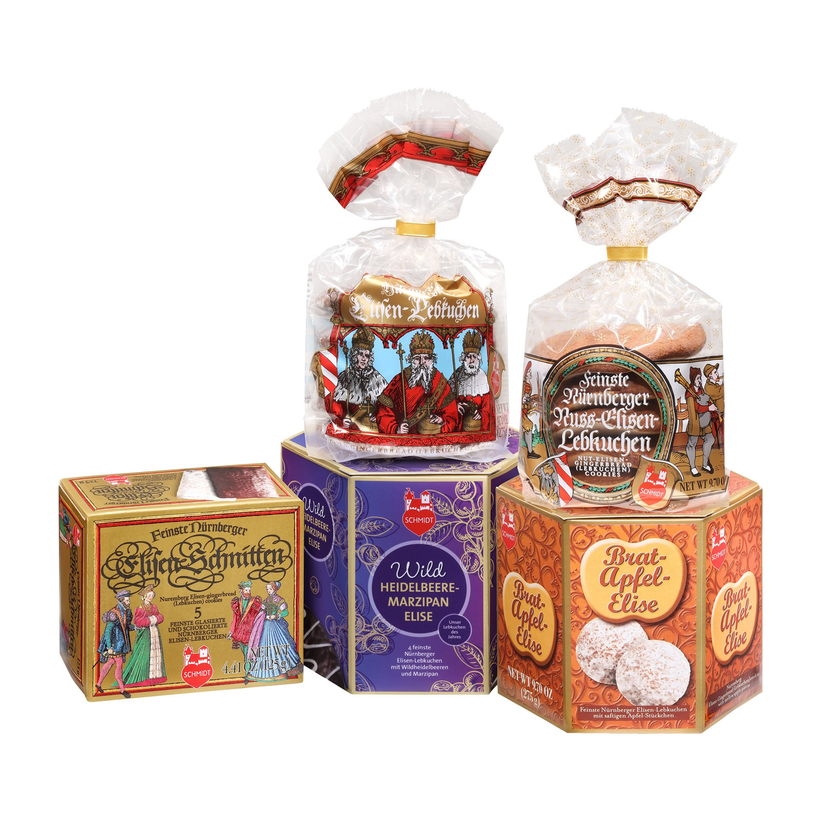 Und die haben wir in unserem Elisen-Lebkuchen-Paket versammelt, um Ihnen oder Ihren Lieben weihnachtlichen Genuss der besonderen Art zu bieten. Und hier können Sie nun Ihren Lieblings-Lebkuchen finden, ob Wildheidelbeere-Marzipan-Elise, Bratapfel-Elise oder Nuss-Elisen-Lebkuchen. Oder haben Sie schon Ihre Favoritin gefunden? Dann greifen Sie gleich zum richtigen Päckchen aus der großen Weihnachtskiste!