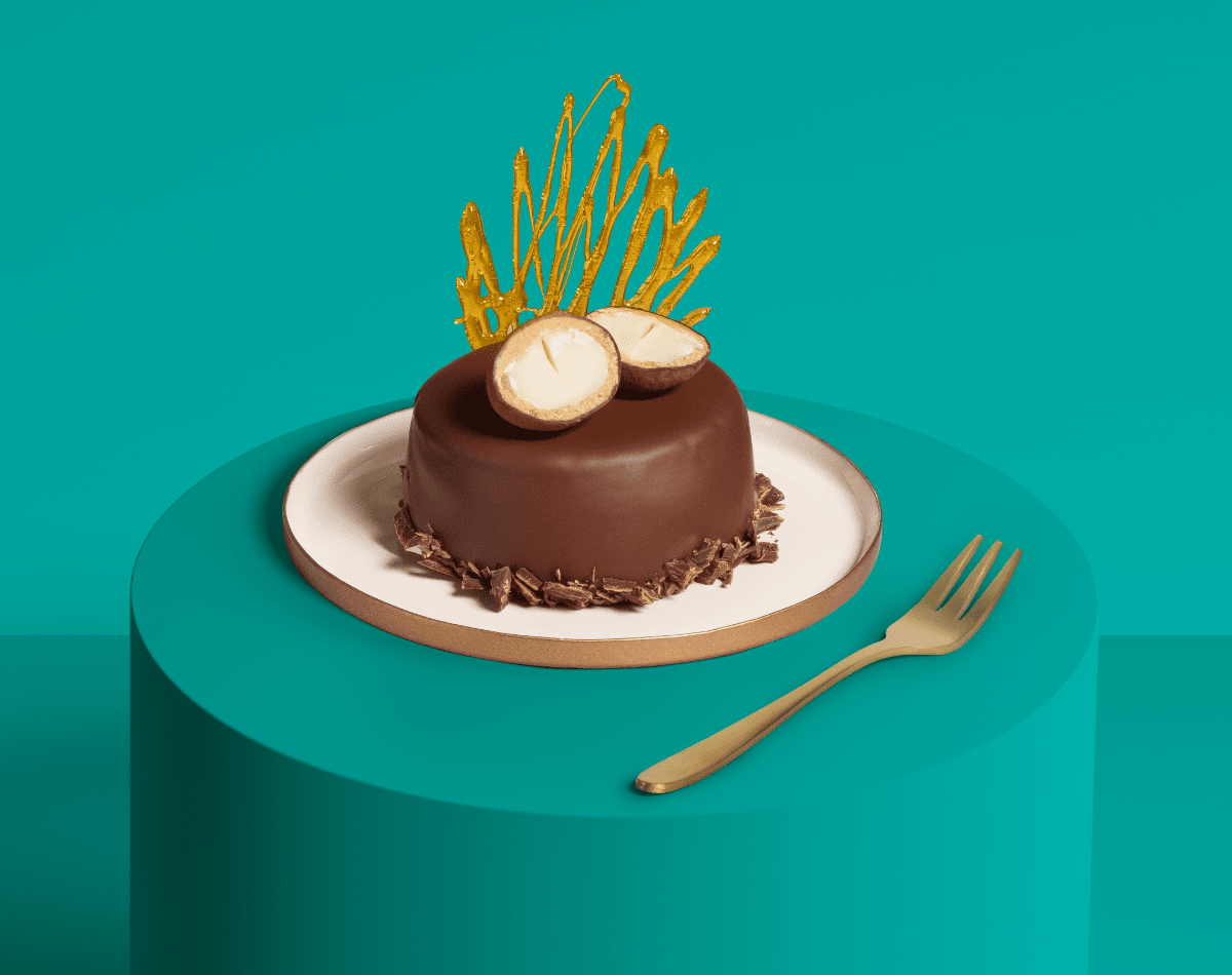 4.Zum Schluss dekorieren Sie das Küchlein mit unseren fantastischen Schoko Perlen. Nach Belieben kann ein Karamellgitter ein weiteres Highlight setzen.