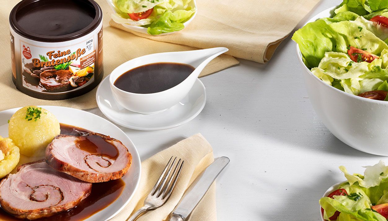 Damit der Sonntagsbraten zu einem wahren Gedicht wird, darf eine köstliche Bratensoße nicht fehlen! Doch manchmal muss es einfach schnell gehen und es bleibt keine Zeit, eine selbstgemachte dunkle Bratensoße zu kredenzen. Da kommt unsere leckere Bratensoße genau richtig: Sie ist im Nu gemacht und schmeckt einfach hervorragend - wie früher bei Oma oder Mama!