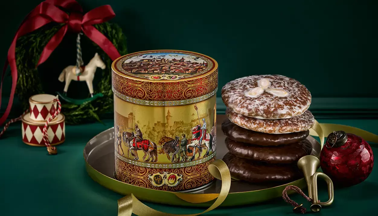 2025 haben wir uns für den Kaufmannszug in Nürnberg entschieden und im Innern der Dose befindet sich ebenfalls Nürnberg pur: das wahrscheinlich bekannteste Produkt aus der fränkischen Metropole, feinste Oblaten-Lebkuchen, natürlich gemischt, so dass jedes Leckermäulchen seinen Lieblings-Lebkuchen bekommt. Mit besten Zutaten auf frischen Oblaten gebacken, sind die runden Köstlichkeiten einfach immer eine Sünde wert!