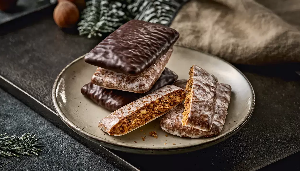 Haben Sie schon mal unsere Elisen-Schnitten probiert? Nein? Dann wird es jetzt höchste Zeit! Die Original Nürnberger Elisen-Lebkuchen sind dank ihrem hohen Nussanteil die Königsklasse unter den Oblaten-Lebkuchen. Als Elisen-Schnitten in rechteckiger Form schmecken sie natürlich genauso einzigartig köstlich! Aus besten Zutaten werden sie nach einem alten traditionellen Rezept schonend hergestellt und gut geschützt verpackt: Auch wenn Sie einen größeren Vorrat in unserem Online-Shop kaufen, halten sie monatelang und bleiben dabei frisch und weich. In der Packung finden sich drei glasierte und zwei schokolierte Elisen-Schnitten – für jeden Geschmack ist etwas dabei! Genießen Sie die Lebkuchen als Nascherei zwischendurch, als Nachtisch oder zum Kaffee, alleine oder mit Freunden! Vor allem in großer Runde ist es ratsam, mehrere Packungen dieser Lebkuchen-Köstlichkeiten hinzustellen, denn sie werden im Nu weg sein, garantiert!