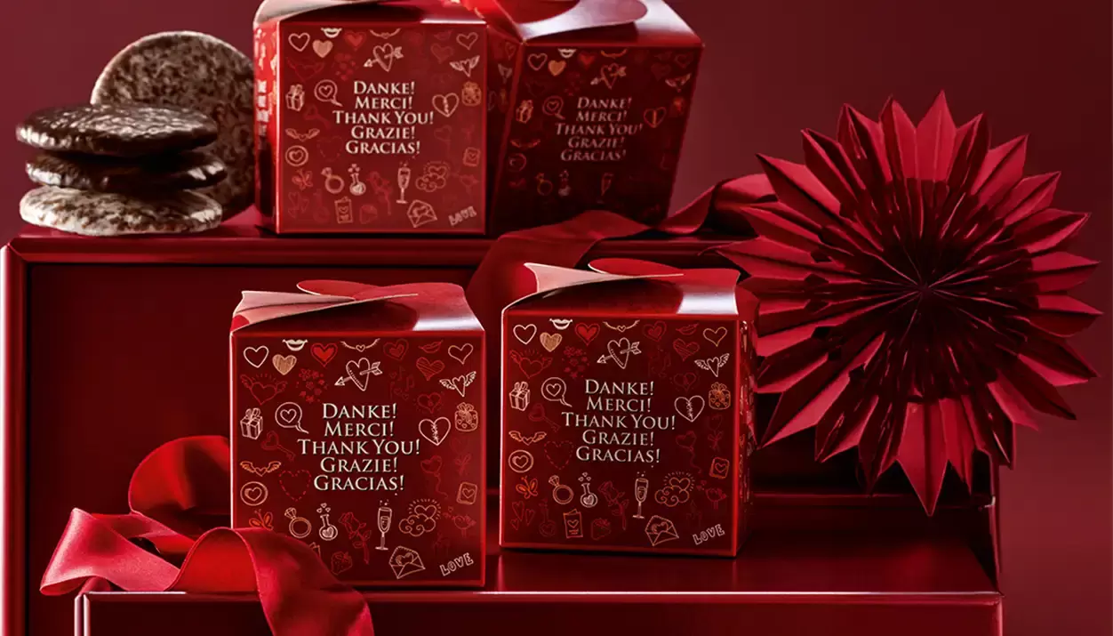 Mit den tollen Präsentideen von Lebkuchen-Schmidt sagen Sie „Danke“ mit exquisitem Genuss: In unserer Elisen-Box zum Beispiel befinden sich vier feine Nürnberger Elisen-Lebkuchen mit Glasur und mit Schokoüberzug, auf frischer Oblate gebacken, mit ganz vielen Nüssen und ganz wenig Mehl im Teig.