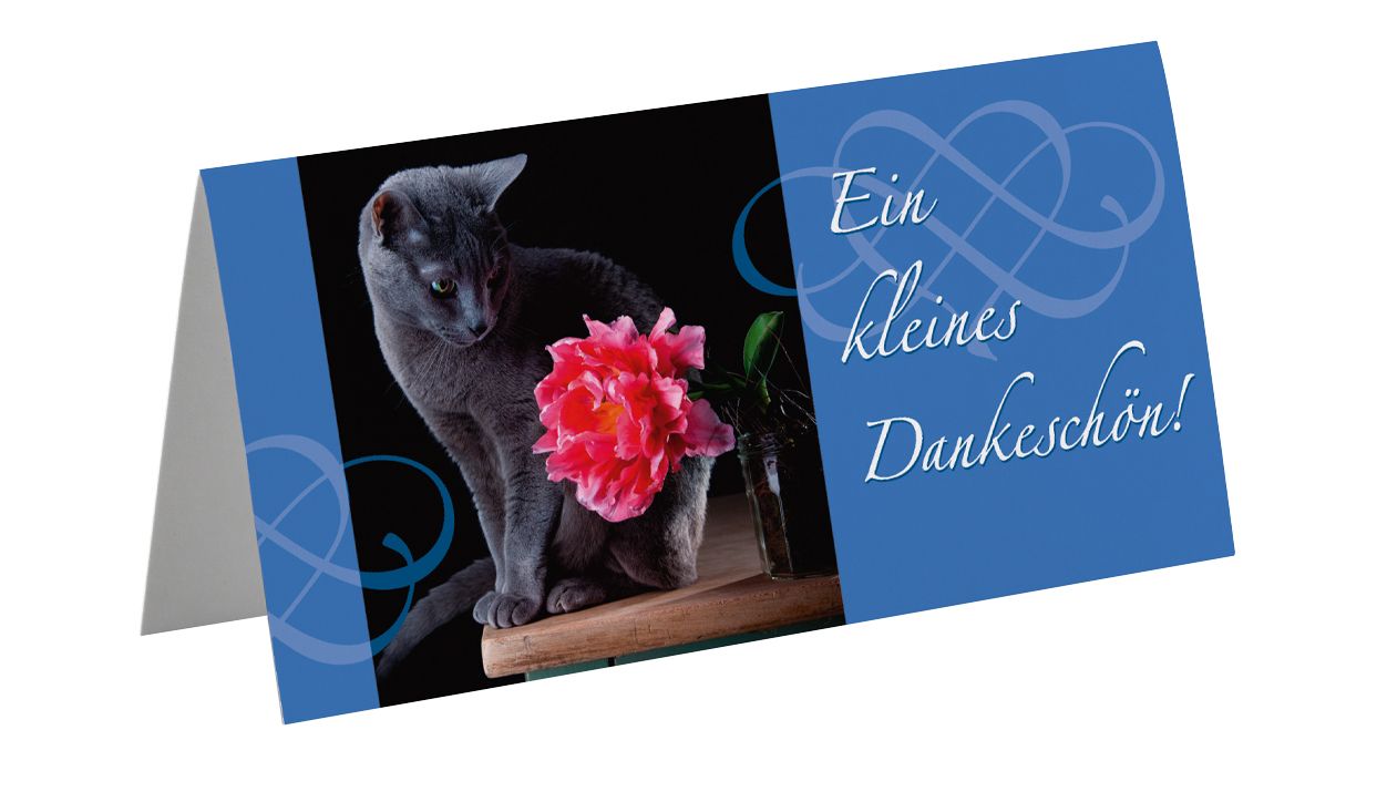 Auf unserer Karte miaut für Sie eine niedliche Katze das "Dankeschön". Und wir sind der Meinung: Schwarze Katzen bringen nicht Pech, sondern Leckereien mit sich!