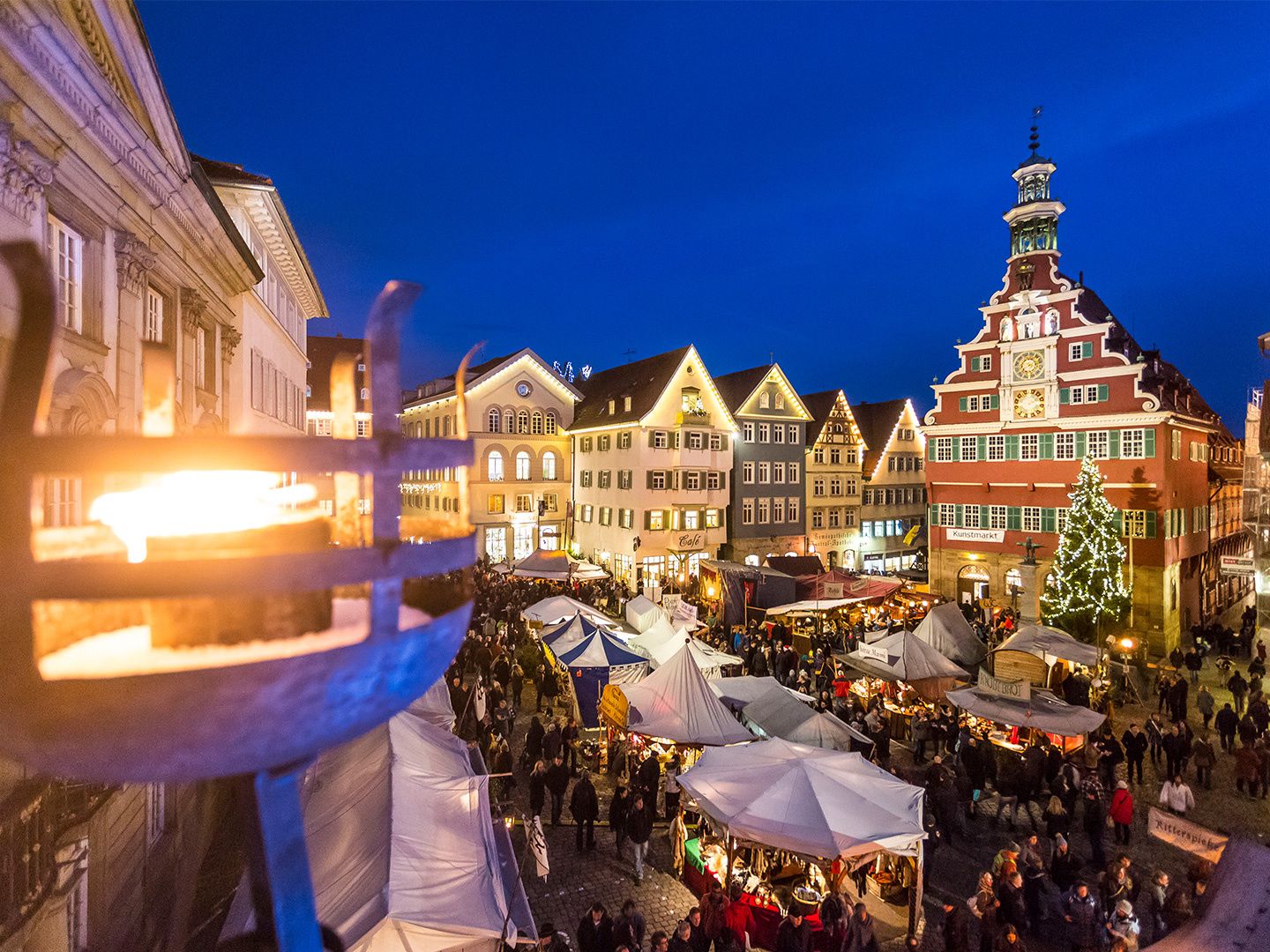 Kultur, Kunsthandwerk, Gaukelei, Speis und Trank: Jedes Jahr verwandelt sich die Esslinger Innenstadt in ein mittelalterliches Spektakulum. Zwischen prachtvollen Fachwerkhäusern und malerischen Gassen feiern die Esslinger Weihnachten auf rustikale und nicht minder romantische Art. Wer sich auf konventionelle Weise auf das Fest der Liebe einstimmen möchte, mit Glühwein und gebrannten Mandeln, wird hier aber natürlich auch glücklich.