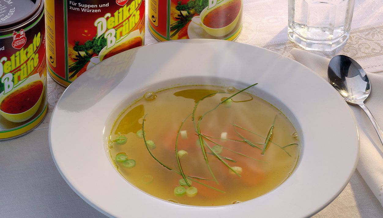 Where do you use vegetable broth as a basis for tasty dishes? Certainly for soups, stews and one or the other sauce - of course, cooked by yourself from the best ingredients. And it's quicker and easier: with our delicate vegetable broth. Thanks to the best ingredients and loving preparation almost like in your own kitchen, our instant broth is in no way inferior to the home-made. And it tastes delicious! Try it out, just pour hot water over a teaspoonful in a cup, stir, and you have a delicious vegetable treat as a snack.